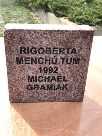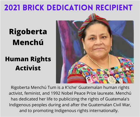 This year's brick dedication honoured Rigoberta Menchu-Tum, 1992 Nobel Peace Prize Awardee from Guatemala for her struggle for social justice and ethno-cultural reconciliation based on respect for the rights of indigenous peoples.